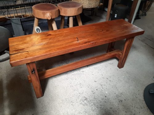 עשוי אלון אדום פרוס מאדן רכבת. מידות: אורך 110 ס”מ, רוחב 30 ס”מ, גובה 45 ס”מ. ניתן להזמין בכל מידה רצויה