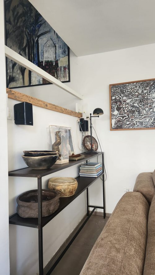 שלד עשוי פרופיל שחור 20/20 מ”מ בחיפוי פח שחור בעובי 3 מ”מ, מטופלים בחומר נוגד חמצון במראה ברזל טבעי. מידות: אורך 190, רוחב 30, גובה 105 ס”מ. ניתן להזמין בכל מידה רצויה